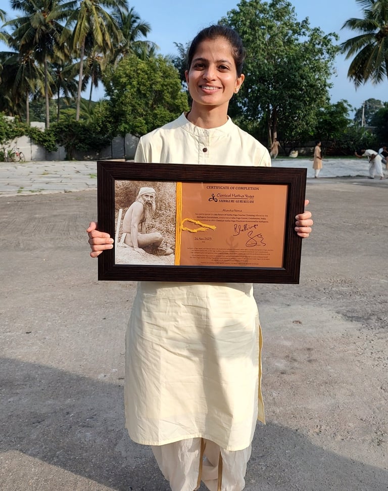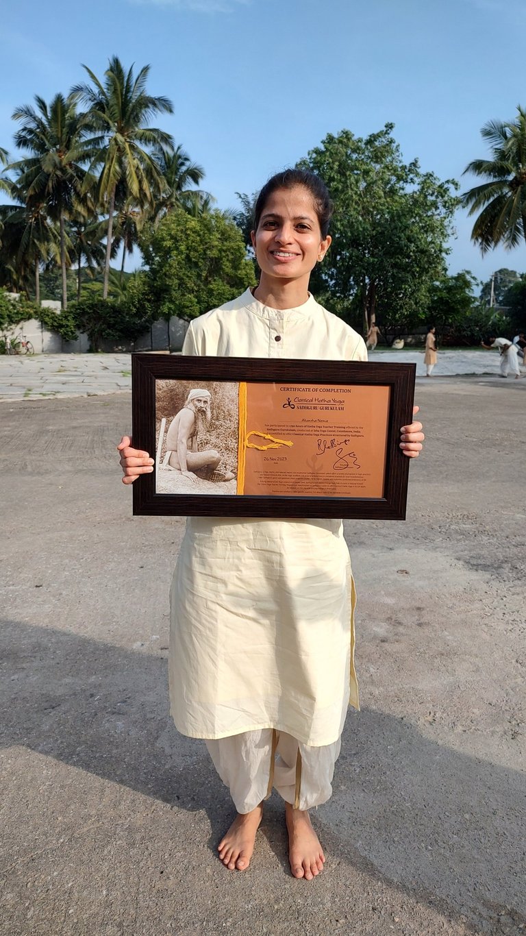 "Earlier, my idea about Yoga was to twist and turn the body to maintain fitness. After I attended classical hatha yoga classes, it completely changed my perspective towards it. It transformed my inner self and shaped me into a blissful person. Becoming a Hatha Yoga teacher is my next step to share the ancient science of yoga with the people and to carry forward Sadhguru's vision to touch and transform every life."